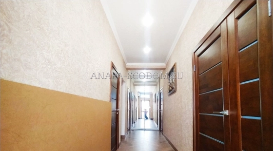 На 1 этаже сделаны теплые водные полы. Межкомнатные двери сделаны из массива дерева. Сенсорные выключатели света.
